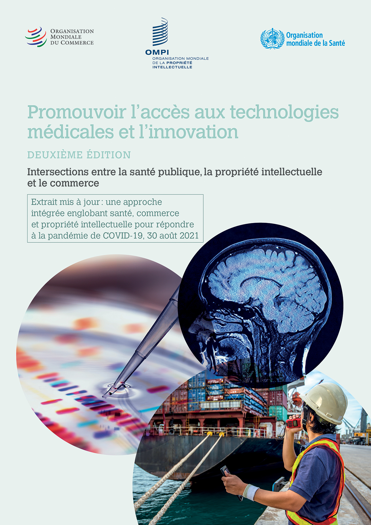 Extrait mis à jour : une approche intégrée englobant santé, commerce et propriété intellectuelle pour répondre à la pandémie de COVID-19, 30 août 2021. La pandémie de COVID-19 constitue une crise de santé publique mondiale extraordinaire. Elle a rendu nécessaire l’intensification de la coopération au niveau planétaire. Dès le début, elle a soulevé des questions à l’intersection entre la politique de santé publique, la politique commerciale ainsi que le cadre et la gestion de l’innovation, y compris pour ce qui est des droits de propriété intellectuelle. La deuxième édition de l’étude conjointe de l’OMS, de l’OMPI et de l’OMC intitulée « Promouvoir l’accès aux technologies médicales et l’innovation : Intersections entre la santé publique et la propriété intellectuelle et le commerce », publiée en 2020, contenait un encart spécial présentant les défis posés par la pandémie de COVID-19 par rapport au cadre intégré de politiques en matière de santé, de commerce et de PI établi dans l’étude. Cette mise à jour révise les renseignements figurant dans cet encart à la lumière de la situation au 30 août 2021