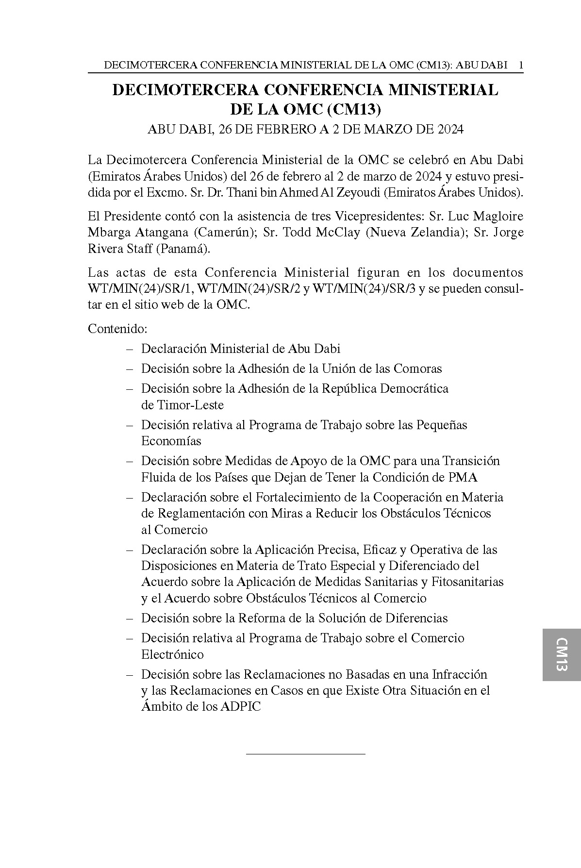 Suplemento relativo a la 13ª Conferencia Ministerial de la publicación titulada “Conferencias Ministeriales de la OMC, resultados fundamentales”