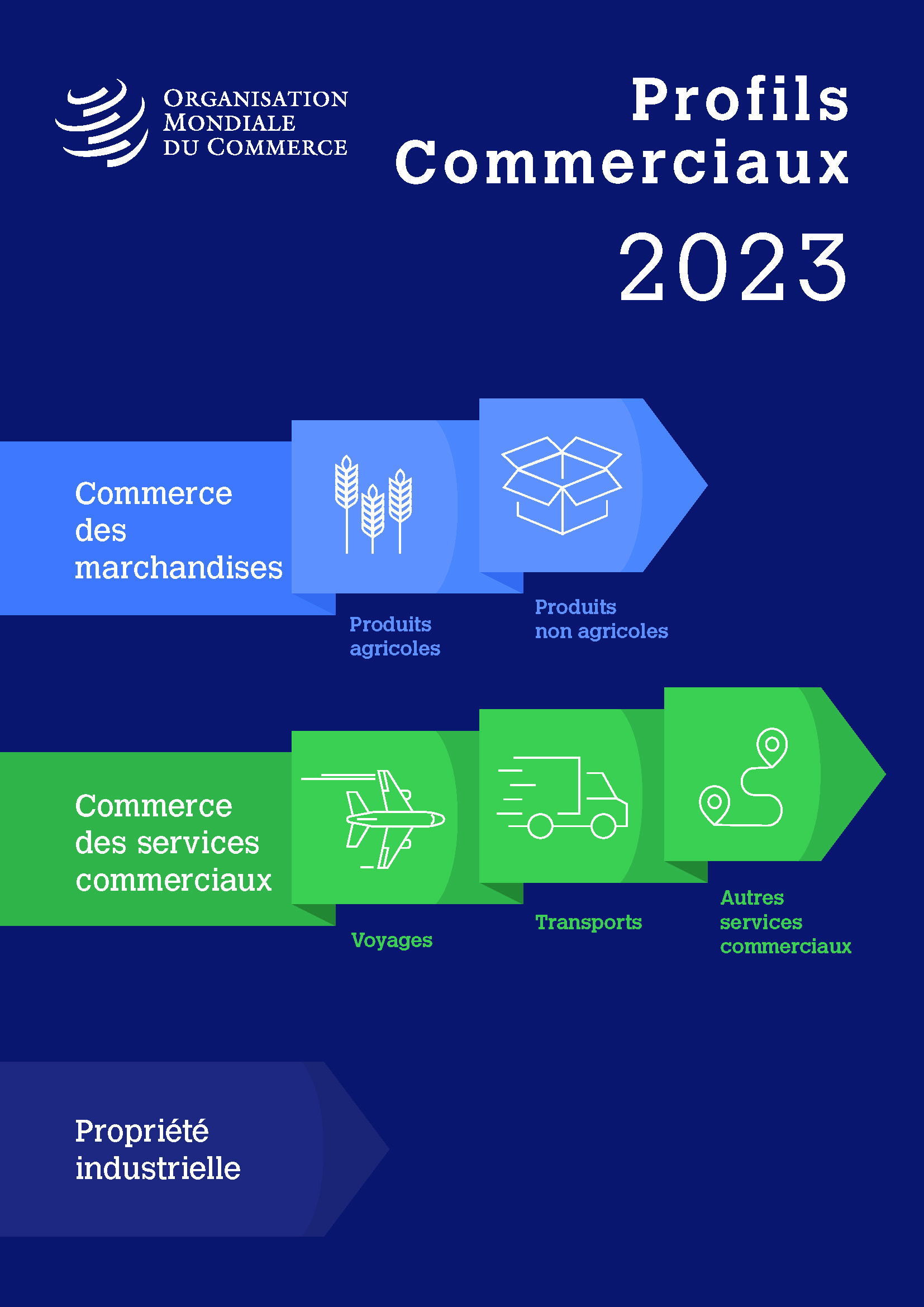 Les Profils commerciaux 2023 fournissent une série d’indicateurs clés sur le commerce des marchandises et des services de 197 économies. Concernant le commerce des marchandises, les principales exportations et importations de produits agricoles et non agricoles sont répertoriées avec les principales origines et destinations de ces produits. Concernant le commerce des services, une ventilation détaillée est donnée pour les services de transport, les services relatifs aux voyages et d’autres services commerciaux. La publication contient également des statistiques sur la propriété intellectuelle. Les informations sont disponibles pour tous les Membres de l’OMC et les observateurs et pour certaines autres économies. Par souci de commodité, les données pour chaque économie sont présentées sur deux pages, ce qui permet d’avoir un aperçu rapide du commerce mondial. La publication est un précieux outil de référence pour tous ceux qui ont besoin de statistiques commerciales de base.